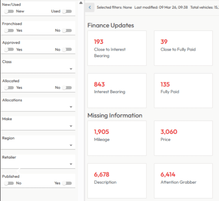 Track the health of your retail operation in real time—stock turn, margin signals, channel performance, and data quality—then drill into the exact vehicles and actions behind the numbers.